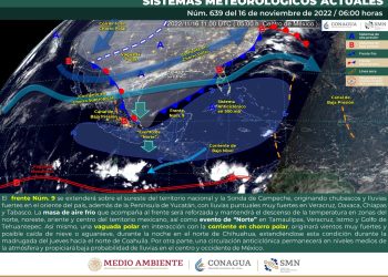 Ciudad de México, a 17 de Noviembre del 2022. Para hoy, el sistema frontal Núm. 9 se extenderá...