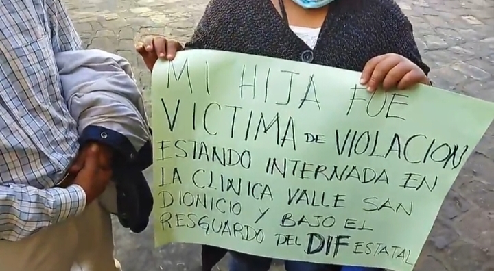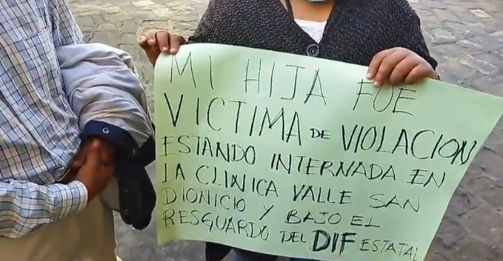 Mayra Miguel Miguel madre de una niña de 15 años exige la aplicación de la justicia en contra de los responsables de delitos de violación y los que lleguen a configurarse en contra del personal de la Clínica Valle San Dionisio ubicada en la calle Emiliano Zapata 14 del municipio de San Dionisio Ocotlán quienes desde el 2011 han tenido bajo tratamiento médico a la menor cuyo estado de salud ha ido en deterioro, la niña está bajo resguardo del DIF estatal, los funcionarios no han actuado en su defensa y ahora pretenden fincarle responsabilidad a su familiar. Ya es la segunda violación de que es víctima en la misma clínica.