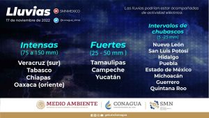 Pronóstico de lluvias para hoy 17 de noviembre de 2022: