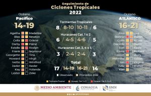 Pacífico Sur: Cielo nublado la mayor parte del día con probabilidad de lluvias por la mañana en zonas de Oaxaca y Chiapas, además de bancos de niebla en zonas serranas. Por la tarde, se pronostican lluvias puntuales intensas en zonas de dichos estados, además de cielo medio nublado por la tarde con posibles chubascos en Guerrero. Ambiente fresco por la mañana y cálido por la tarde. Evento de “Norte” con rachas de 70 a 90 km/h en el Istmo de Tehuantepec y olas de 3 a 5 metros de altura en el Golfo de Tehuantepec.