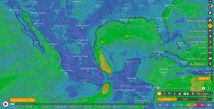 Para el Pacífico Sur cielo nublado la mayor parte del día con lluvias puntuales muy fuertes en Chiapas, fuertes en Oaxaca e intervalos de chubascos en Guerrero. Ambiente fresco por la mañana, bancos de niebla y ambiente frío en zonas serranas. Por la tarde, ambiente cálido, así como caluroso en costas de Guerrero y Oaxaca. Viento del norte con rachas de 50 a 60 km/h en el Istmo de Tehuantepec y olas de 1 a 3 metros de altura en el Golfo de Tehuantepec, se pide a la navegación tome sus precauciones especialmente a las embarcaciones pequeñas.