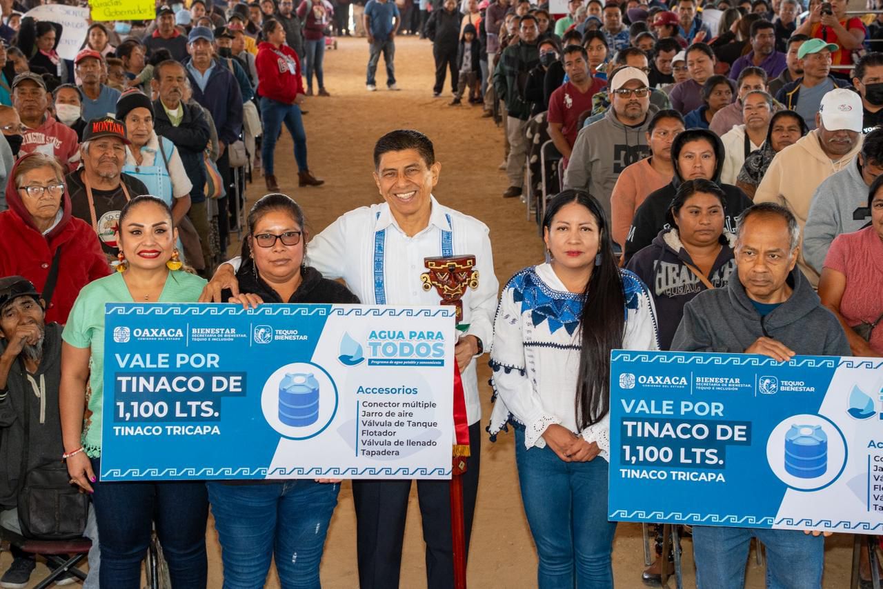 Por ello, gracias al respaldo de nuestro gobernador, Salomón Jara Cruz, miles de hogares se beneficiaron con la entrega de 1,100 tinacos a través del Programa de Agua Potable y Saneamiento “Agua para Todos”, fortaleciendo el acceso al vital líquido en nuestro municipio.