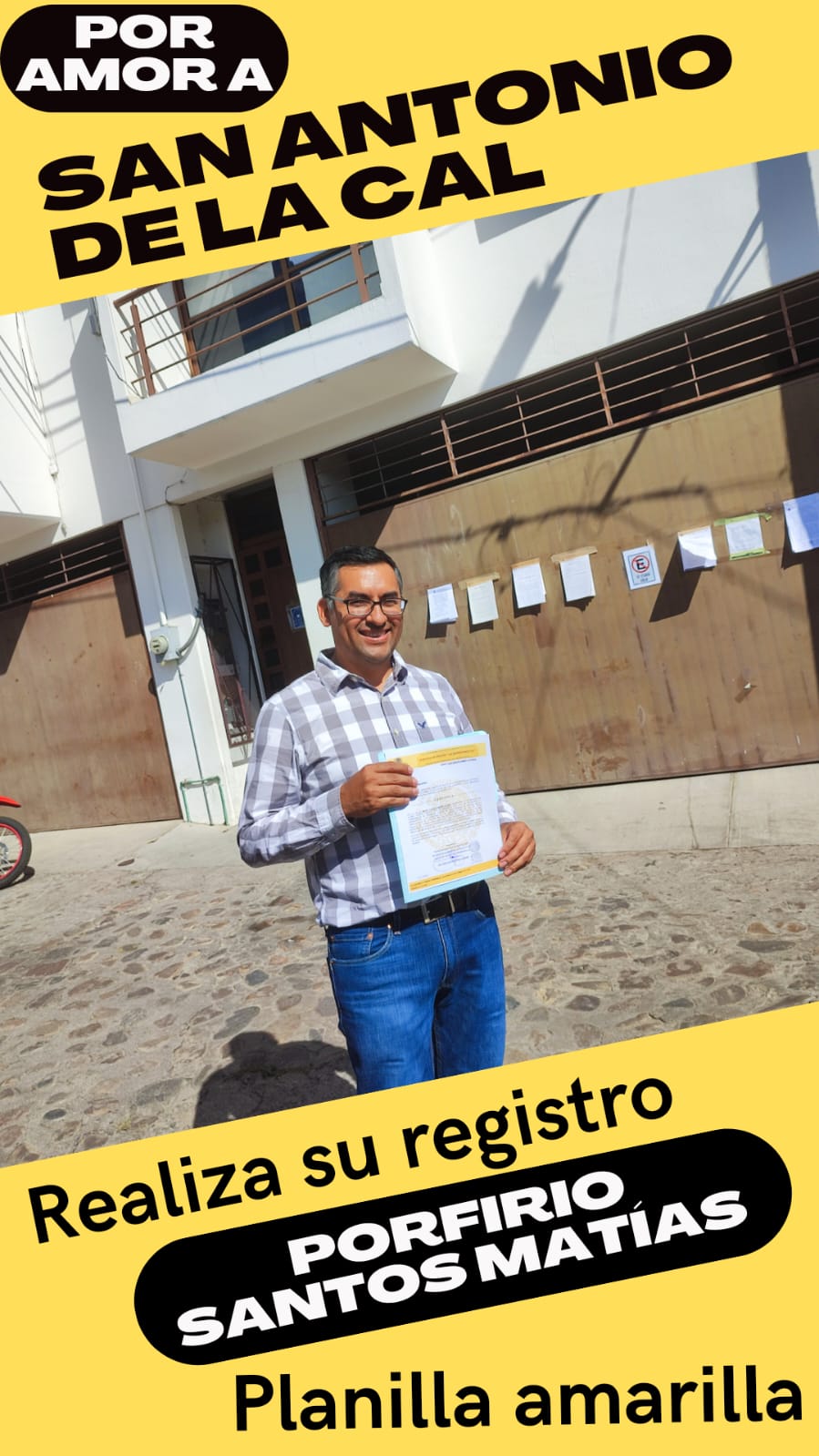 Esta semana quedó completo el registro, en tiempo y forma, de Porfirio Santos Matías como candidato por la PLANILLA AMARILLA para contener por la presidencia de San Antonio de la Cal, que llevará a cabo sus elecciones el día domingo 11 de diciembre de 2022.