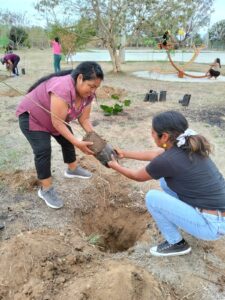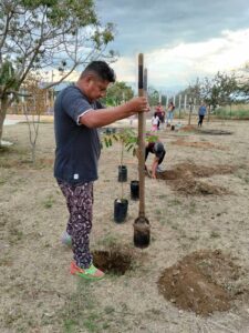 El martes 14 de abril, padres y madres de familia de los niños y niñas del equipo de básquetbol “Potros de Jalpan” , en colaboración con el director de Deportes del municipio de San Raymundo Jalpan, organizaron un tequio de reforestación en el parque de las canchas de la localidad.