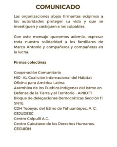 Organizaciones sociales y ciudadanos se suman al apoyo para Marcos Suastegui Muñoz, líder opositor a la Presa La Parota en Acapulco, Guerrero,tras el atentado en contra de su vida ocurrido la noche del viernes 18 de abril.