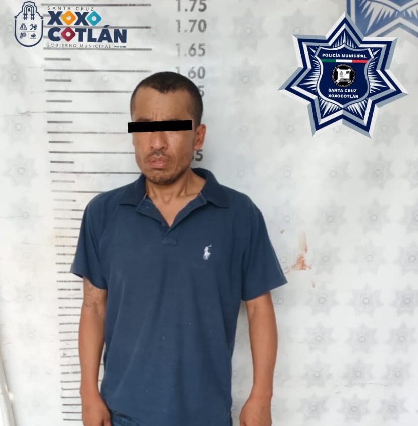 Santa Cruz Xoxocotlán, Oaxaca, a 5 de mayo de 2023. La tarde de ayer, elementos de la Policía Municipal de esta comunidad detuvieron a un sujeto que era buscado por el asalto que cometió a la tienda Oxxo ubicada en la calle Morelos del centro de la capital oaxaqueña.