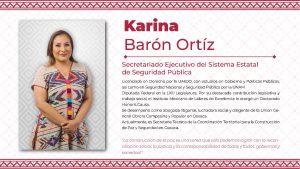 En la Secretaría de Seguridad y Protección Ciudadana, el capitán Iván García Álvarez; en la Secretaría Ejecutiva del Sistema Estatal de Seguridad Pública, Karina Barón Ortiz.