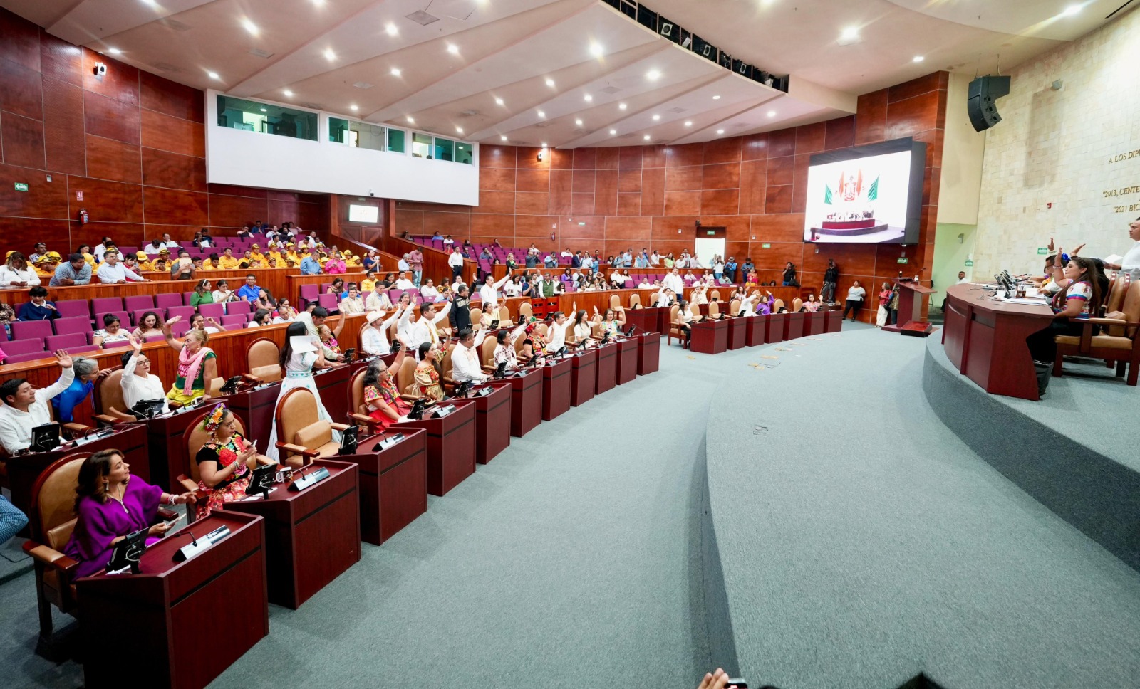 “Hoy por fin daremos el primer paso para evitar que se sigan robando lo que es de las y los oaxaqueños, lo que es de las y los mixes, pero, sobre todo, lo que nos da identidad a cada uno de los oaxaqueños”, declaró en tribuna.