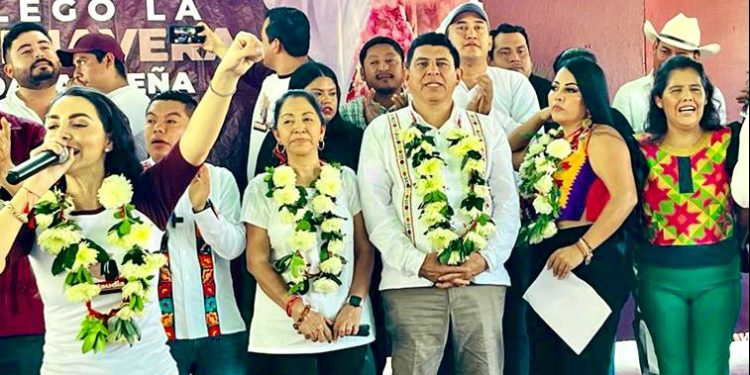 San Pedro Pochutla.- 04 de Noviembre 2022.- Al acompañar a su amigo, el gobernador electo de Oaxaca Salomón Jara Cruz en su gira de agradecimiento por la Costa del estado, el joven referente de morena Antonino Morales Toledo, invitó a los pueblos de esa región costeña, a participar de la gran fiesta por el inicio formal de la Transformación de Oaxaca, que iniciará este próximo 1 de diciembre con la toma de protesta del nuevo gobierno.