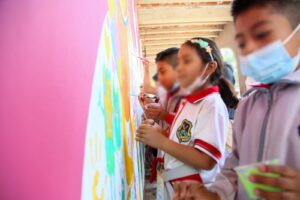 En este marco, las y los participantes echaron a volar su imaginación y plasmaron un dibujo en el mural que fue inaugurado en la fachada del palacio municipal de Tlalixtac de Cabrera, a fin de recordar la importancia de recurrir a los libros para tener momentos agradables, conocer otras historias y lugares.