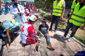 Durante el simulacro, las personas en la planta baja evacuaron de inmediato, sin embargo en niveles 1, 2 y 3 adoptaron sus posiciones de seguridad al inicio, y después de diez segundos, evacuaron los inmuebles de manera ordenada.