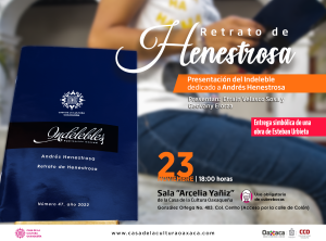 • La Casa de la Cultura Oaxaqueña presentará el último número de la serie de “Indelebles” que lleva por título “Retrato de Henestrosa”